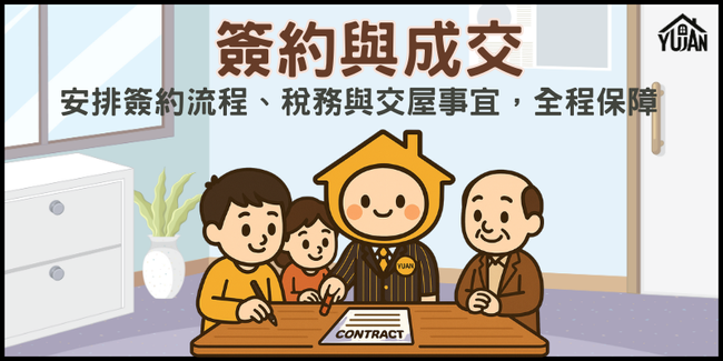在雙方同意後,我們會安排簽訂買賣契約,並搭配有牌代書與履約保險服務,確保整體交易合法、安全又無後顧之憂。同時我們也會協助您進行房地合一稅務諮詢與資料準備。