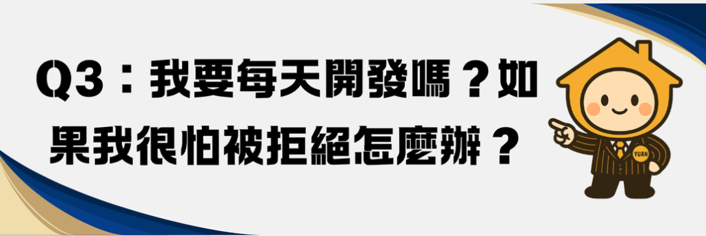 A:坦白說,是的,新手初期一定會需要自己主動開發(包括打電話、發DM、拜訪等),因為你要讓世界知道你是誰。